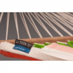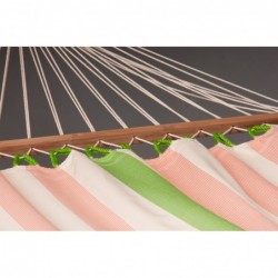 Hamac à barres double Colada résistant aux intempéries dans des couleurs pastelles fraiches et estivales. Il est fabriqué en Colombie à partir du tissu outdoor HamaTex® ce qui le rend ultrarésistant et garantit un séchage rapide. Les lisières sont renforcées, le hamac en est de fait indéchirable. Les barres d'écartement sont en bambou FSC® issu de la gestion forestière responsable.