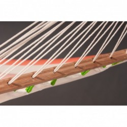 Les deux barres d'écartement permettent une ouverture optimale du hamac. Très confortable pour 1 à 2 personnes.Astuce: pensez à toujours bien tendre votre hamac lorsque vous le suspendez !
