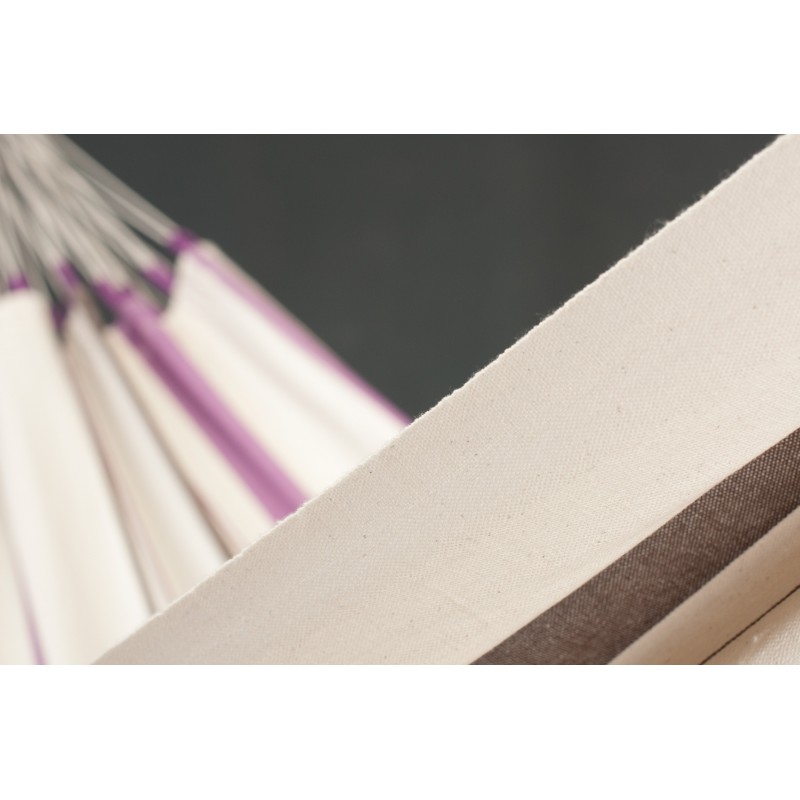 Les lisières sont renforcées par le doublement des fils de trame. Le tissu du hamac est de fait indéchirable.