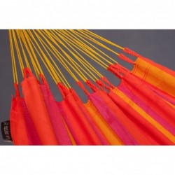 Hamac traditionnel en tissu, pour 1 personne. Astuce : c'est en vous allongeanten travers du hamac que vous offrez le meilleur confort à votre dos.