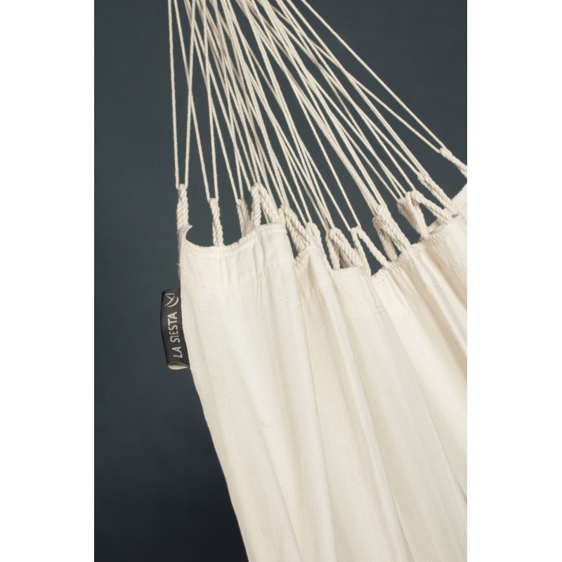 Le hamac simple Modesta, naturel et sobre en coton bio non-blanchi et non-teint, possède un certificat GOTS et respecte l’homme et la nature. Le coton bio est incroyablement agréable au toucher et facile d’entretien. Le nombre important de cordons de suspension, typique pour nos hamacs colombiens, permet une répartition du poids optimale et assureconfort de couchage et longévité du produit. Les lisières renforcées rendent le hamac indéchirable.