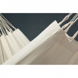 Les lisières sont renforcées par le doublement des fils de trame. Le tissu du hamac est de fait indéchirable.