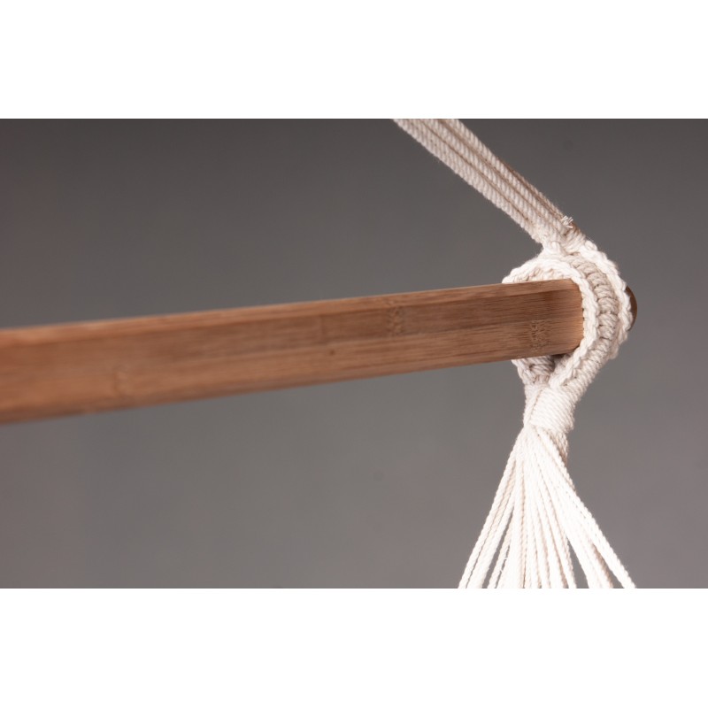 Les lisières sont renforcées par le doublement des fils de trame. Le tissu du hamac est de fait indéchirable.