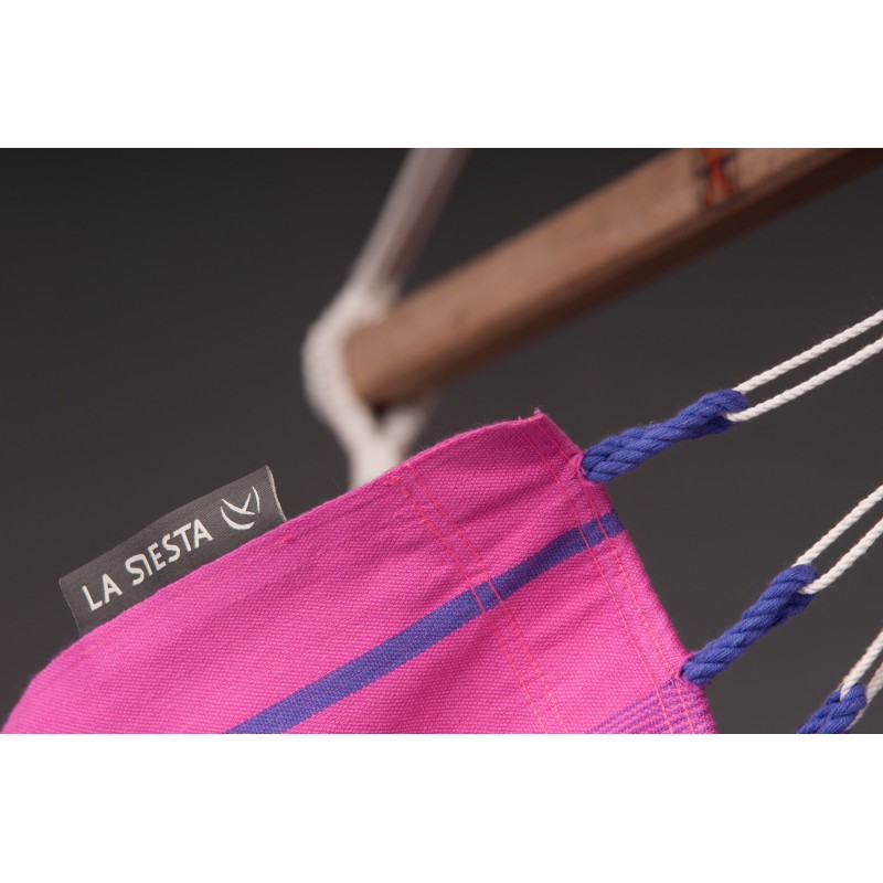 Le Hamac One Orquídea basic, existe dans des tons chauds et ensoleillés, frais et bleus comme l’océan, verts plein de vie d’une prairie d’été ou dans des tons violets idylliques. Pour accrocher dans la maison ou à l'extérieur. Il est fabriqué en Colombie en pur coton de qualité supérieure. Les lisières renforcées rendent le tissu indéchirable. Les nombreux cordons de suspensions permettent une répartition du poids optimale et ainsi assure confort et longévité du produit. Le tourbillon intégré permet de pouvoir tourner à 360° en toute sécurité autour de l’axe de suspension. La barre d’écartement en bambou de très bonne qualité n’est pas seulement un délice pour les yeux, il est aussi particulièrement solide et résistant aux intempéries. Le bois utilisé est issu de la gestion forestière responsable FSC™.